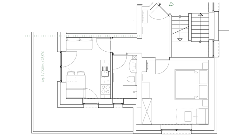 Diese 40 Quadratmeter große Ferienwohnung ist geeignet für zwei bis drei Personen. Sie ist aufgeteilt in Wohnküche, Schlaf- und Badezimmer. Die Wohnküche ist mit Geschirrspüler, Kaffeemaschine, Backofen, Ceranfeld-Elektro-Herd, Kühlschrank, sowie einem Ess- und Sitzbereich ausgestattet und bietet Zugang zum großen, sonnigen Süd-Balkon. Weiters gibt es ein Schlafzimmer mit einem Doppelbett und einem Einzelbett. Das Badezimmer verfügt über Dusche, WC, Handtuchtrockner und Haarfön. In der Ferienwohnung Enzian befindet sich ein TV-Gerät und Gratis-Wlan.